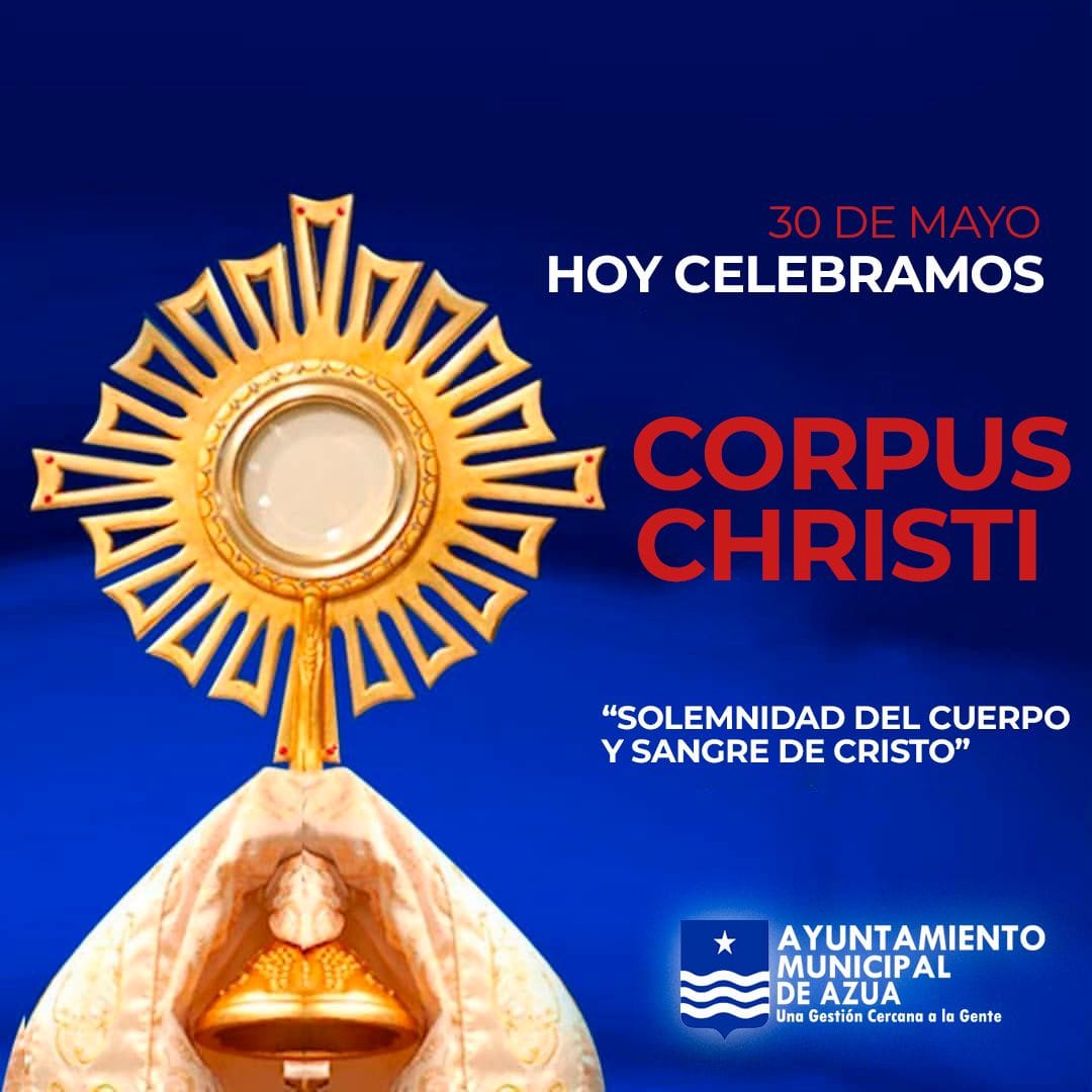 Hoy jueves 30 de mayo 2024 se celebra el día de Corpus Cristi, La Alcaldía de Azua se une a esta fiesta de devoción a Jesucristo.