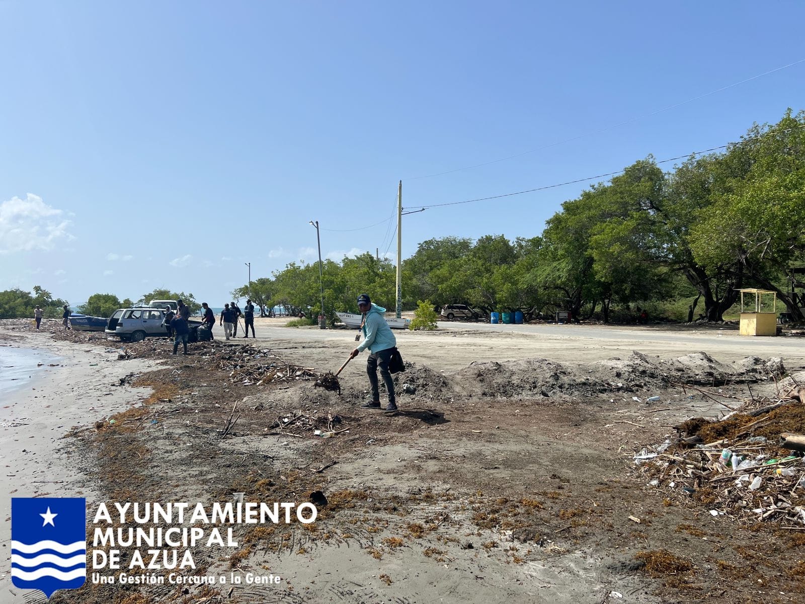 El Ayuntamiento Municipal de Azua, el Ministerio de Medio Ambiente y el Ministerio de Turismo, están realizando hoy un operativo de limpieza a la playa Monte Río.