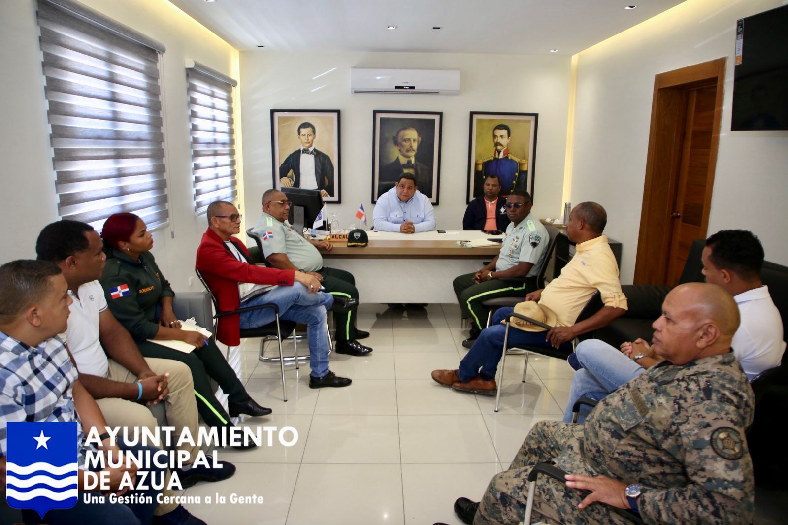 En el encuentro participaron el Tte. Coronel Eury Made, Director Regional Subcentral de la DIGESETT con asiento en Peravia; el Mayor Nicolás Lorenzo Rodríguez, comandante de la DIGESETT en Azua; alcaldes y directores distritales de Pueblo Viejo, Peralta, Clavellinas, El Barro, Las Lomas y Los Jovillos; así como miembros del Plan Municipal de Ordenamiento Urbano, la Policía Municipal, el Secretario General y el equipo de Seguridad Municipal.