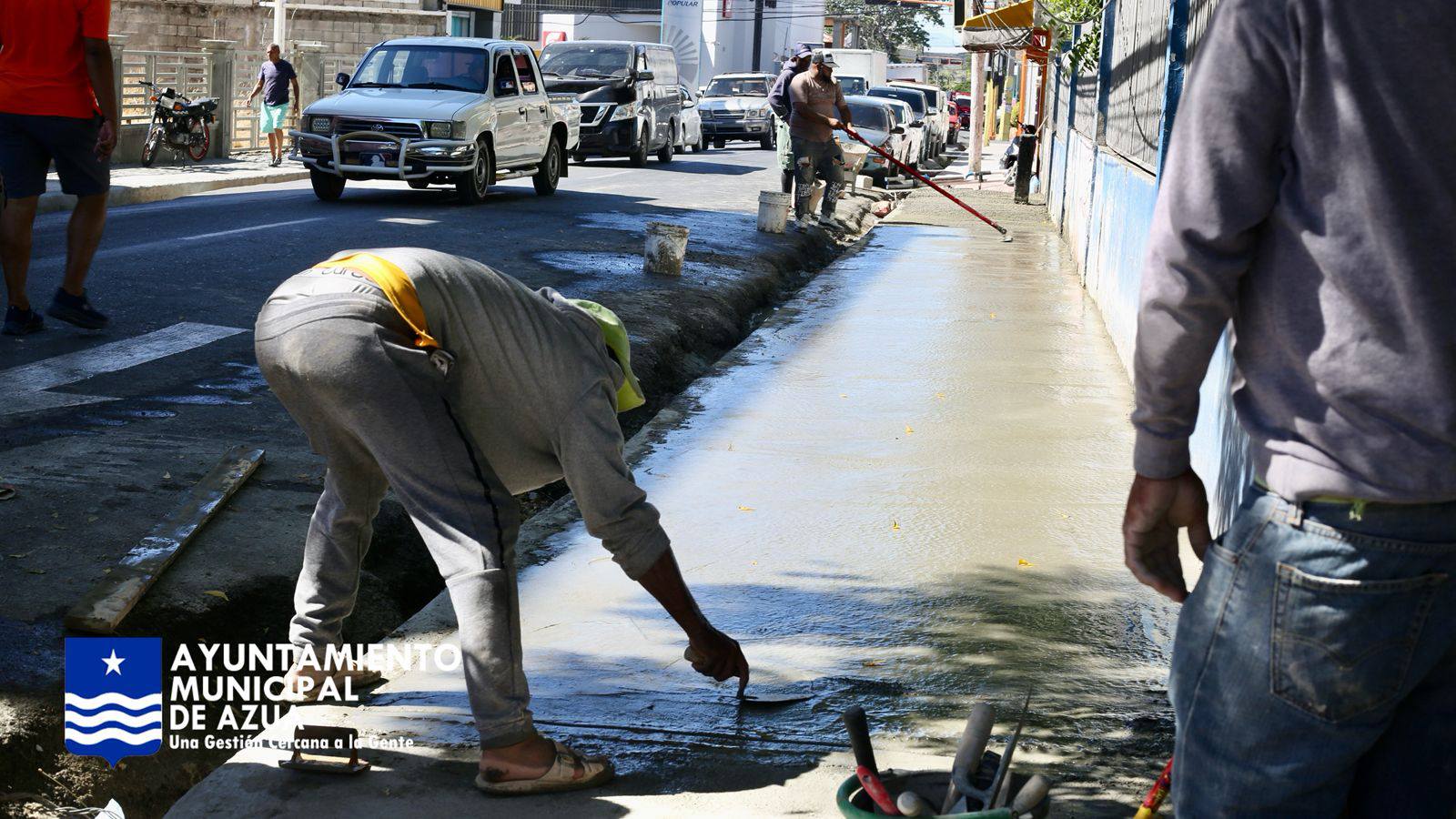 El Departamento de Planeamiento Urbano del Ayuntamiento Municipal de Azua realizó el vaciado de la acera en la calle Duarte, próximo a la biblioteca municipal, como parte de los trabajos de mejoramiento urbano orientados a fortalecer la seguridad, la transitabilidad y el embellecimiento del municipio.