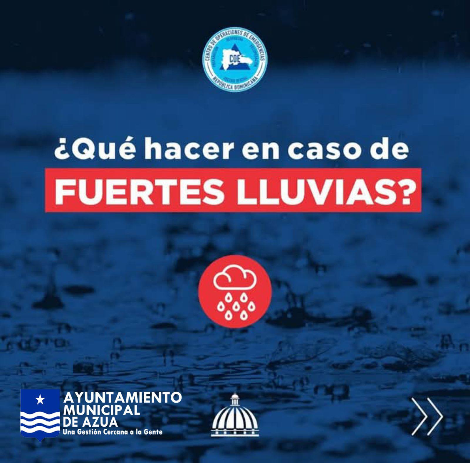 El Ayuntamiento Municipal de Azua exhorta a la ciudadanía a mantenerse alerta y tomar las debidas precauciones ante la incidencia de una masa de aire húmeda y una vaguada que continúan afectando gran parte del territorio nacional. Estas condiciones atmosféricas podrían generar lluvias intensas en las próximas horas.