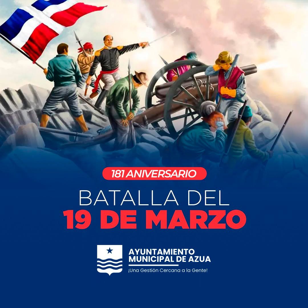 El Ayuntamiento Municipal de Azua de Compostela conmemora con profundo respeto y orgullo el 181 aniversario de la gloriosa Batalla del 19 de Marzo de 1844, rindiendo homenaje a los valientes héroes que defendieron con coraje la soberanía nacional en suelo azuano.