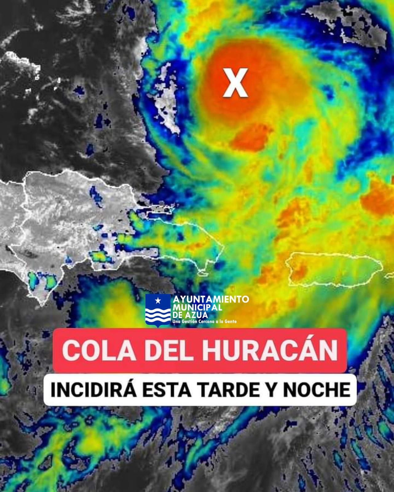 La cola del Huracán Ernesto se encuentra sobre República Dominicana, aumentando el potencial de precipitaciones entre moderadas y fuertes: el centro del fenómeno se ubica a 285 kilómetros al norte de Punta Cana y 240 al noreste de Samaná, mientras empieza a alejarse del país.