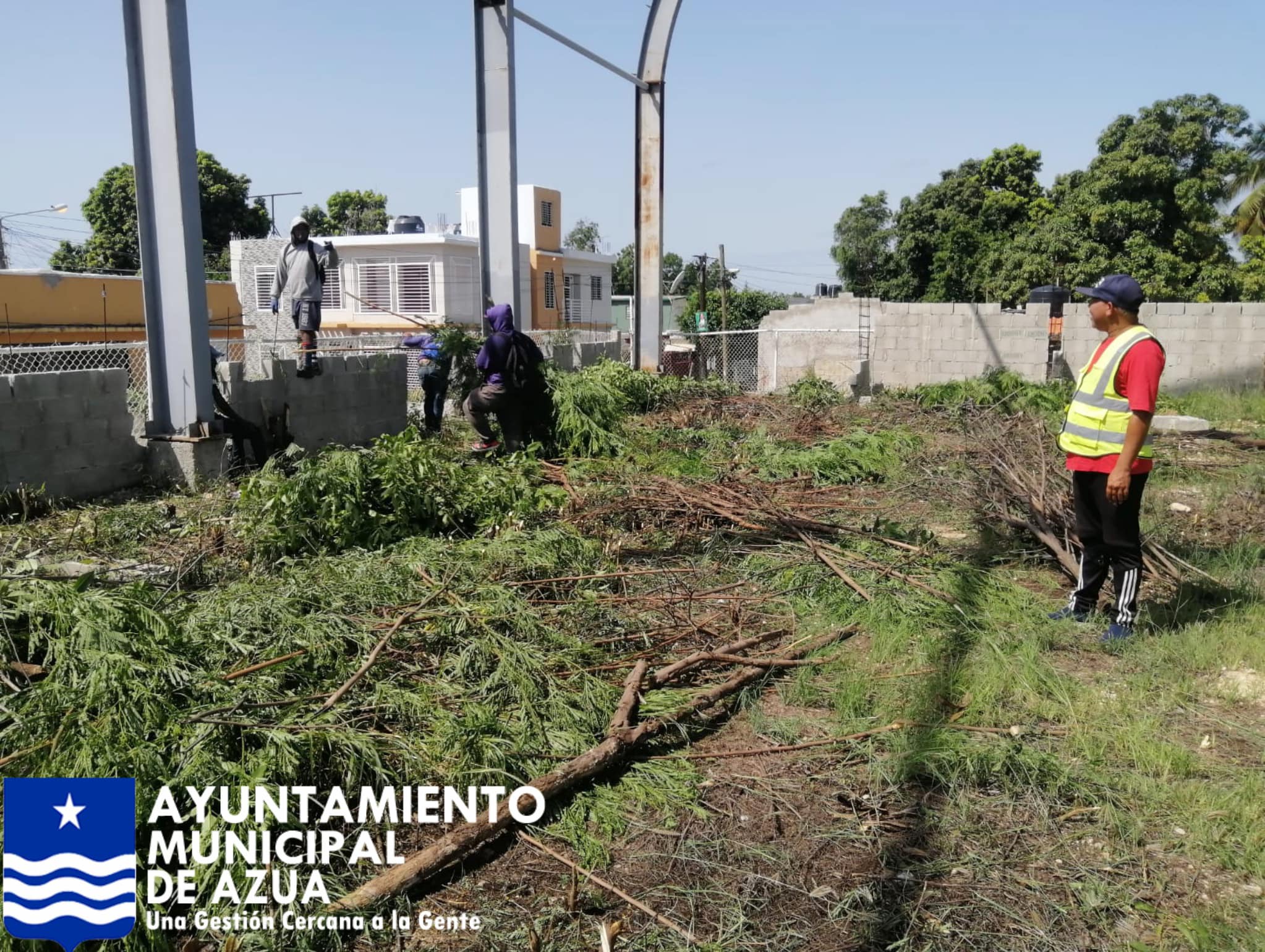 Brigadas de la Unidad de Gestión Ambiental y Aseo Urbano de la Alcaldía de Azua siguen llevando a cabo intervenciones en diversos puntos críticos de la ciudad. Donde en la tarde de hoy, se encuentran realizando un operativo en la Cancha de la Colonia, con el objetivo de controlar la proliferación de insectos y mosquitos ocasionada por las recientes lluvias que han afectado al municipio.