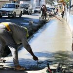 Ayuntamiento de Azua ejecuta vaciado de acera en la calle Duarte