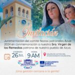 El Comité de las Fiestas Patronales Azua 2024, tiene el honor de invitarles a su juramentación este viernes 26 de julio, a las 10:00 am, en el salón de actos de la Alcaldía Municipal.