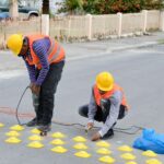 La alcaldía de azua, bajo las órdenes de nuestros honorable alcalde el Dr. Ruddy González, realizan trabajo de colocación de reductores de velocidad en avenida Sergio Vílchez, el alcalde Ruddy González siempre atendiendo el llamado de a su gente.