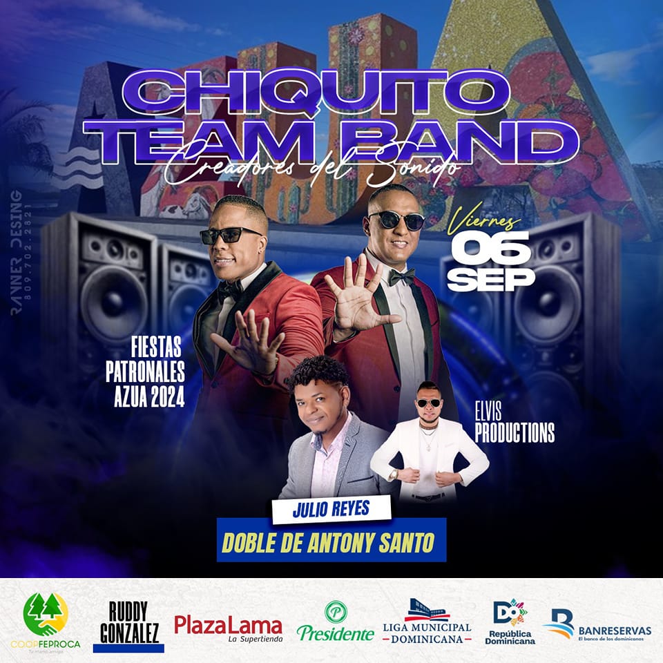 La invitación hoy viernes en la noche, es para disfrutar y gozar con la presentación en tarima del Doble de Anthony Santos y Chiquito Team Band, a ritmo de bachata y salsa para cantar y bailar.