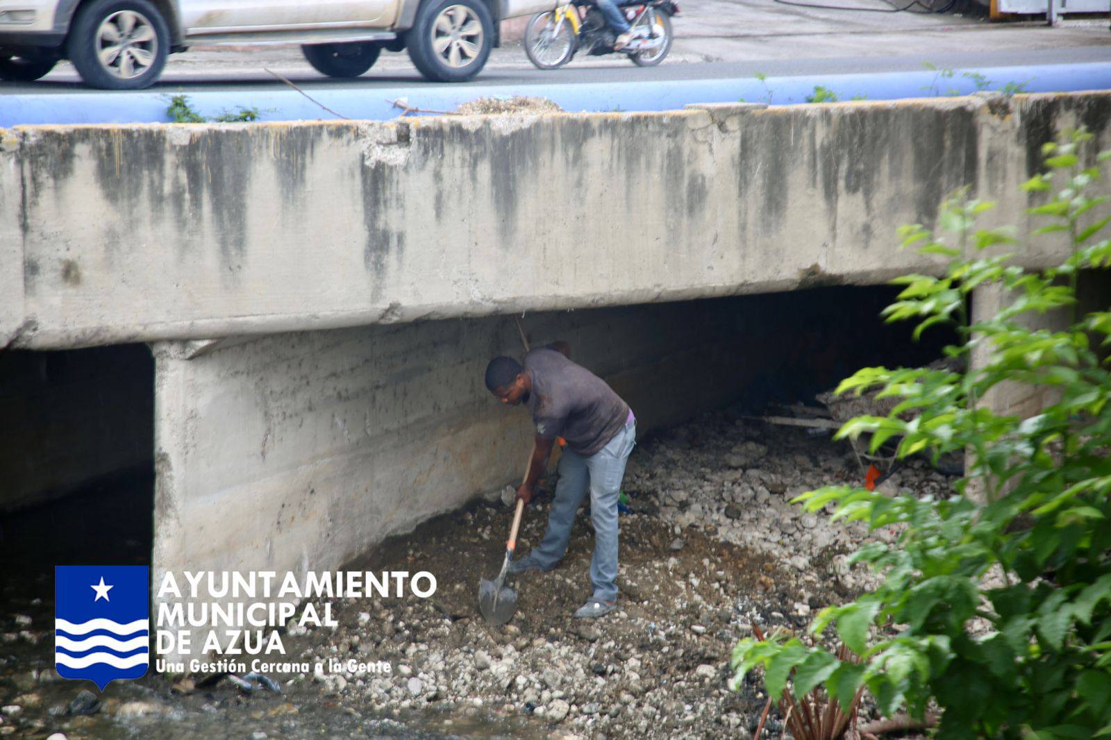 El Ayuntamiento de Azua sigue adelante con los operativos preventivos de limpieza y saneamiento en las zonas bajas y áreas vulnerables del municipio. En esta ocasión, se están realizando trabajos intensivos de limpieza y retiro de sedimentos debajo del puente ubicado en la calle Sánchez, próximo a los Muros, en el sector La Bombita, específicamente en la cañada conocida como “La Cañada del Diablo”.