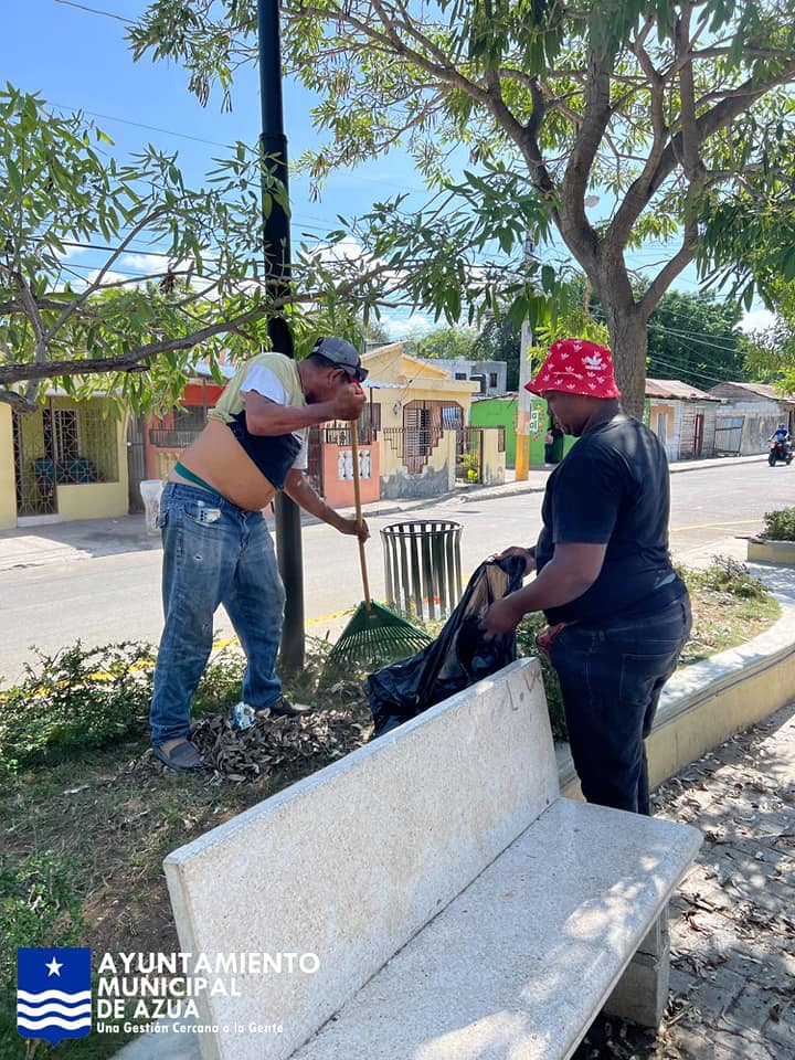 Las brigadas de Medio Ambiente de la Alcaldía Municipal de Azua realizan trabajos de poda y adecuación en la Plaza Dr. Juan Julio Obando Rivas, antigua Santome.