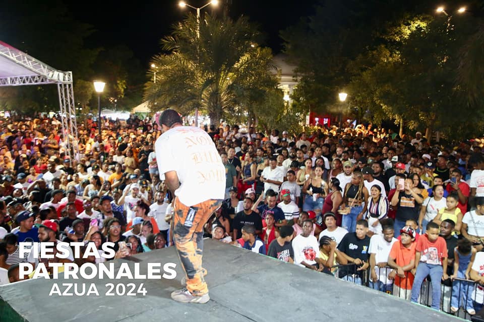 Como parte de las actividades culturales, deportivas y recreativas que conforman las Fiestas Patronales Azua 2024, por disposición y dirección de la Lic. Tatiana Noboa, presidente del Comité de Festejos, se llevaron a cabo las presentaciones en tarima la noche del miércoles con la actuación del Papá del Rap, el Lápiz Conciente, quien puso a gozar y a vibrar al público presente en una noche llena de alegría y emoción.