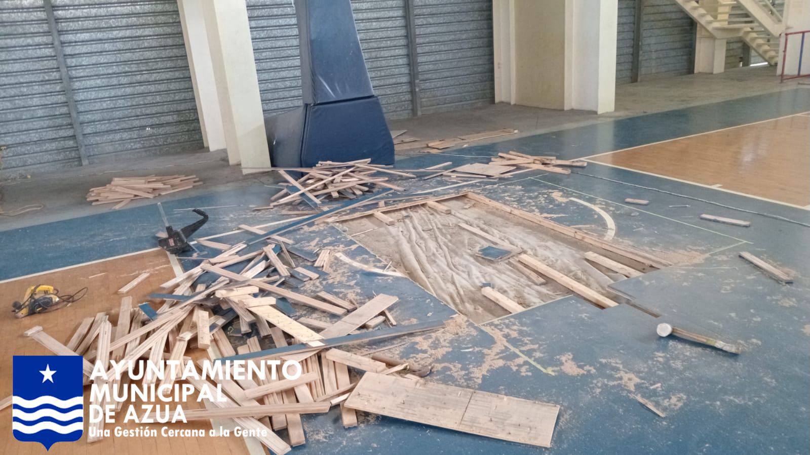 Gracias a la gestión del alcalde Rafael Hidalgo y al apoyo del ministro de Deportes, Kelvin Cruz, comenzaron los trabajos de mantenimiento y acondicionamiento del techado del Polideportivo de Azua, con el objetivo de mejorar las condiciones de este importante espacio deportivo.