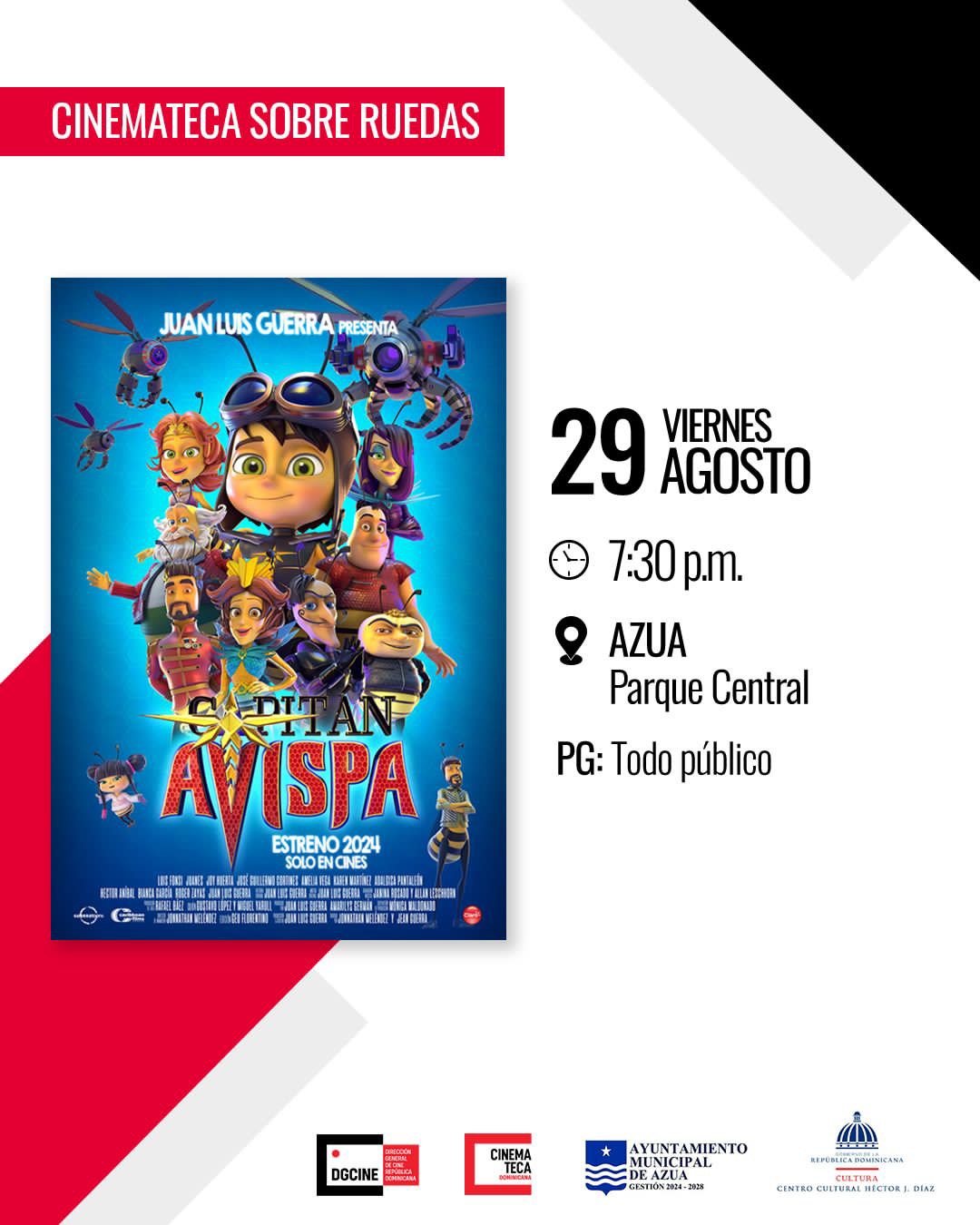 ¡Este viernes 29 de agosto, #CinematecaSobreRuedas llega al municipio de Azua de Compostela!