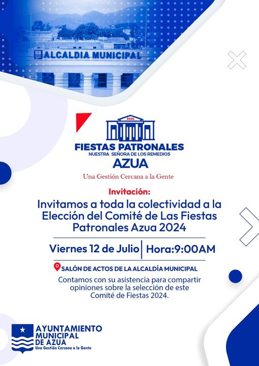 Invitamos a toda la colectividad a la elección del Comité de Las Fiestas Patronales Azua 2024,