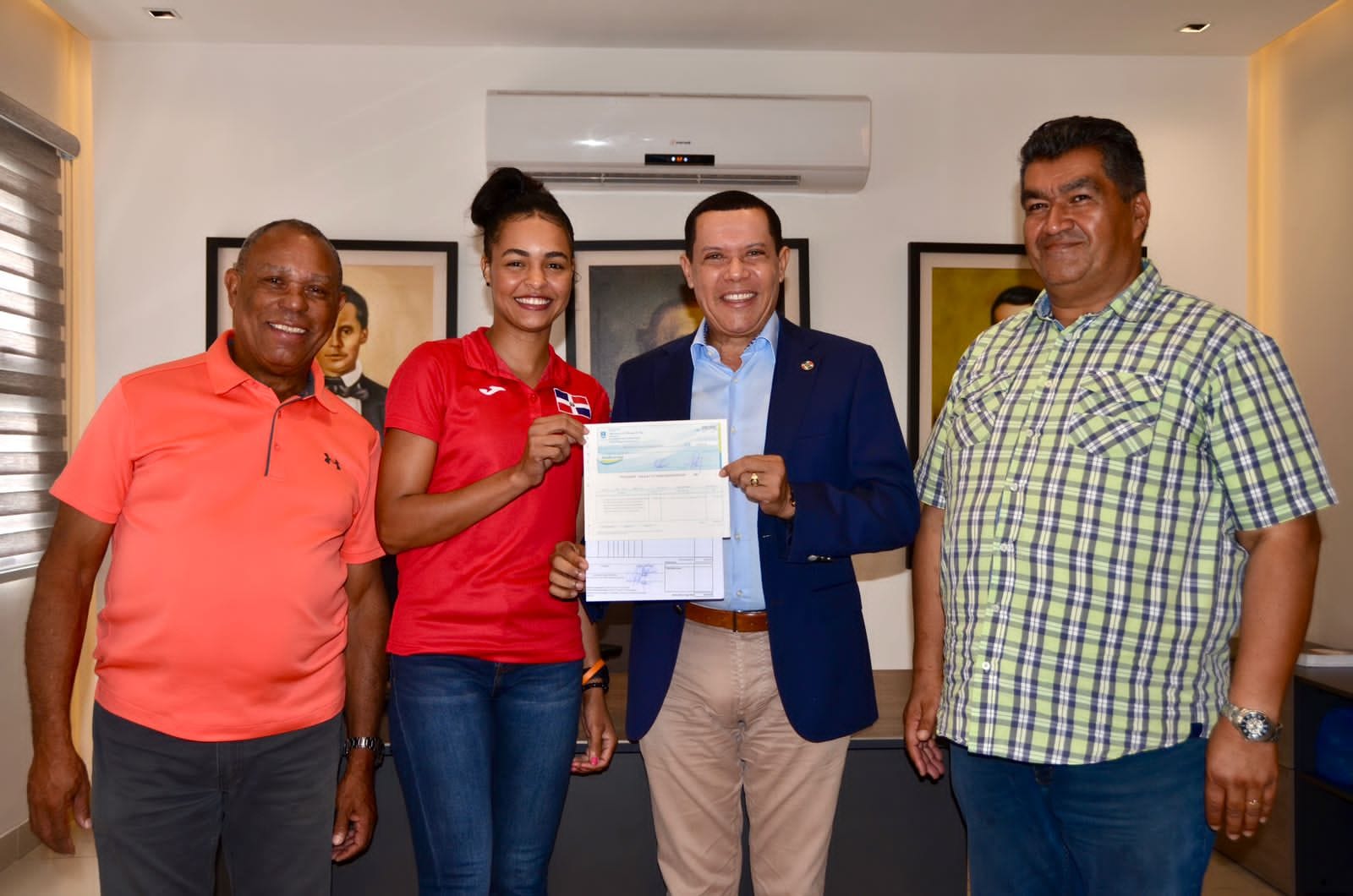 La mañana de este Lunes, nuestro honorable Alcalde Dr. Ruddy González, procedió a entregarle un cheque por un monto de $.100.000.00 pesos, a la ganadora de la Medalla de oro en Taekwondo en Chile, Mayerlin Mejía. En el acto estuvo acompañado por el Padre Duván López y el Profesor Bolivar Beltre, el Alcalde Ruddy González, resaltó que lo más importante después de este aporte, son los valores que esta joven le inserta a la sociedad con esta Medalla de oro para Azua.