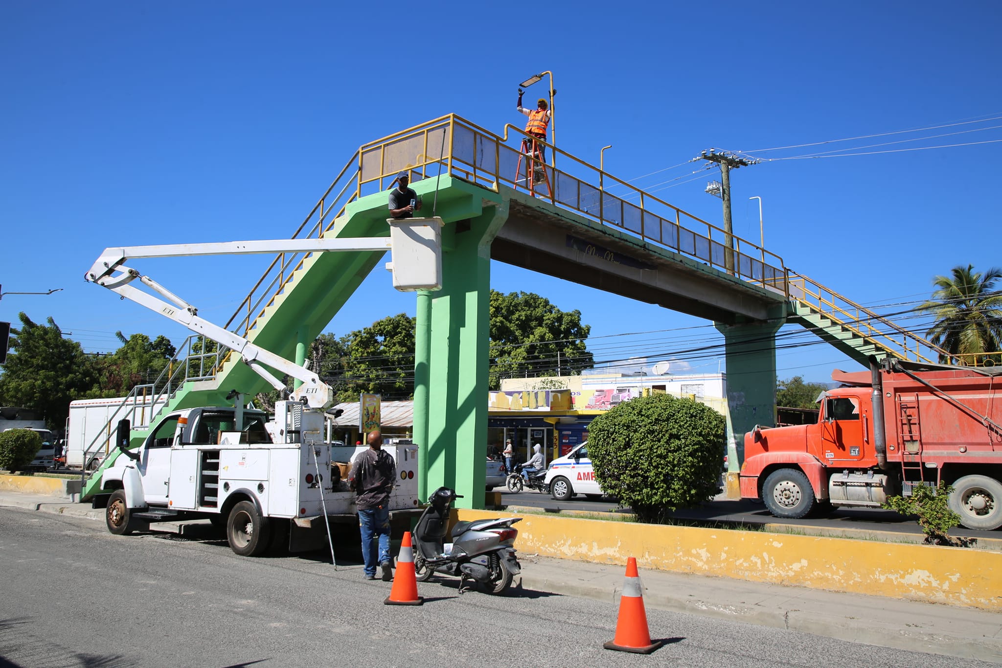 También se le está dando mantenimiento a los Puentes Peatonales y colocándoles sus lámparas, para la seguridad de todos los peatones que transitan por ahí y evitar hechos delictivos.
