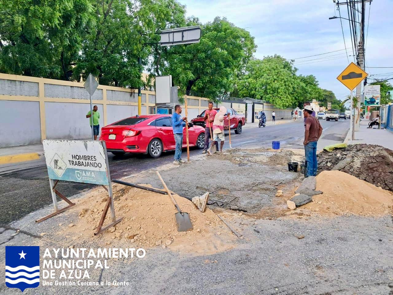Por disposición del alcalde, Ing. Rafael Hidalgo, el equipo de Ingenieros de la alcaldía y sus colaboradores de la Alcaldía, la tarde se este lunes, se desplazaron a las inmediaciones de la policía y la Escuela Bartolomé Olegario Pérez, aquí en Azua.
